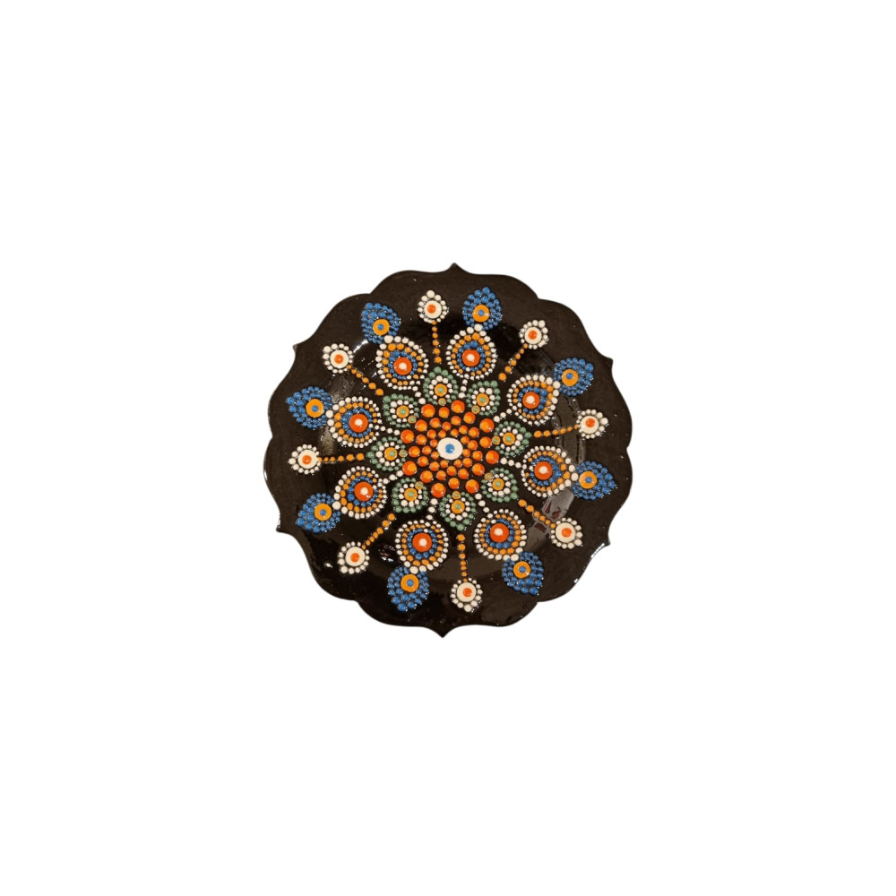 Asya kültürlerinde dini törenlerde kullanılan sembollerden biri olan mandala tekniği ile işlenen tabak modellerimizde, ortada tek noktayla başlayan, etrafında içten dışa doğru büyüyen ve evreni temsil eden bir ritüel vardır.